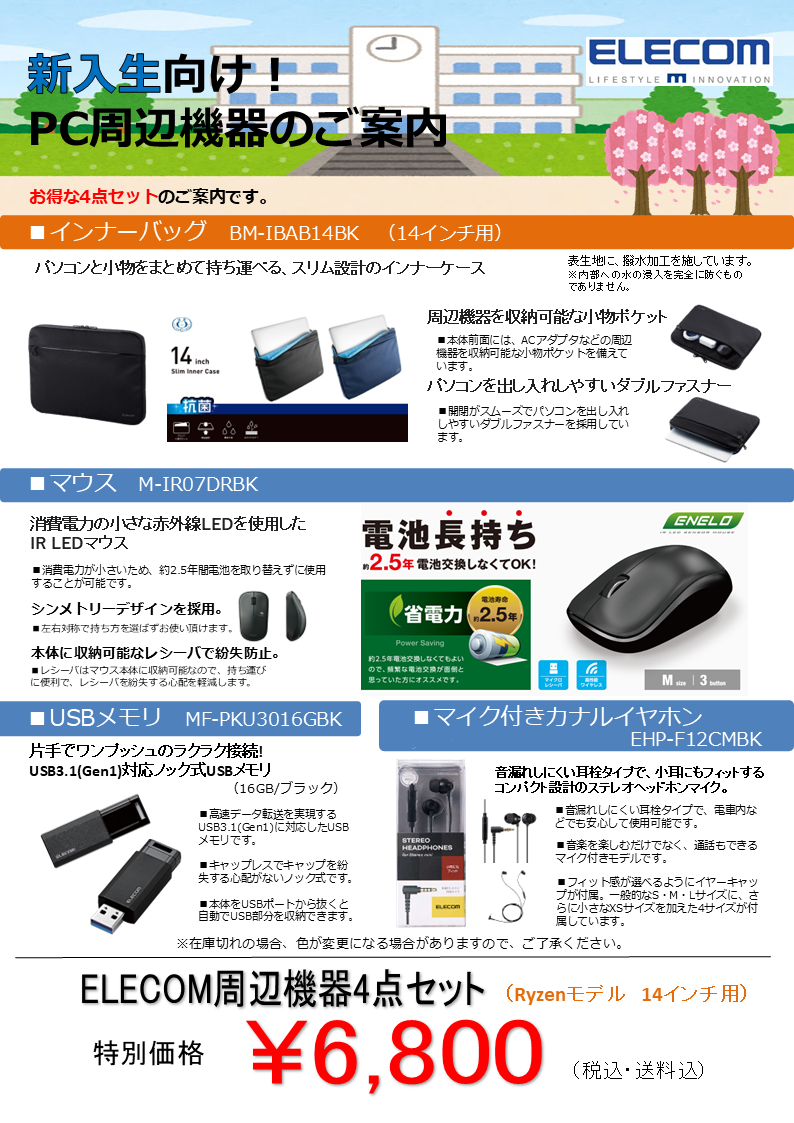 (※ELECOMセットで品切れがあった場合、色が変更になる場合がありますので、ご了承ください。)